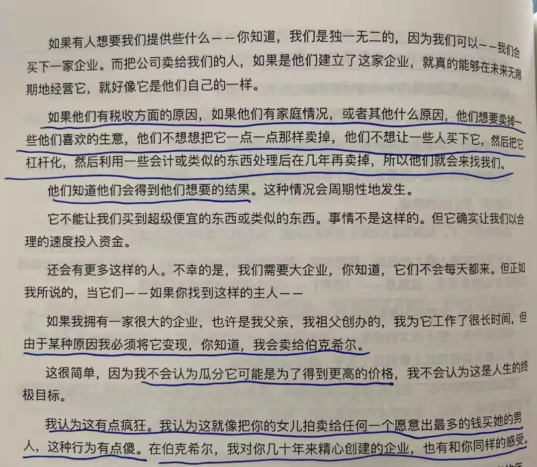 伯涵:之前确实有过困惑,心想既然都是好公司,那创始人或者继承者何必要卖呢?卖了何必又要留在那里工作呢?现在看来,巴菲特在不同场合,都做过解释,只不过是要多读书才行。一定有某本书,讲到了自己想要的那个答案。