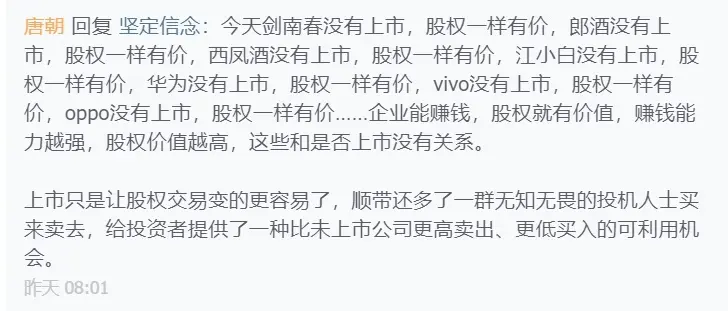 边鱼:能否这样表述:流动性与内在价值无关,与价格还是有关系滴……唐朝:对。靡不有初鲜克有终:没有老唐的中翻中,真是看不懂。