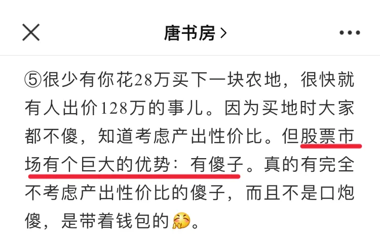 唐朝:股市有个巨大的优势:有傻子。