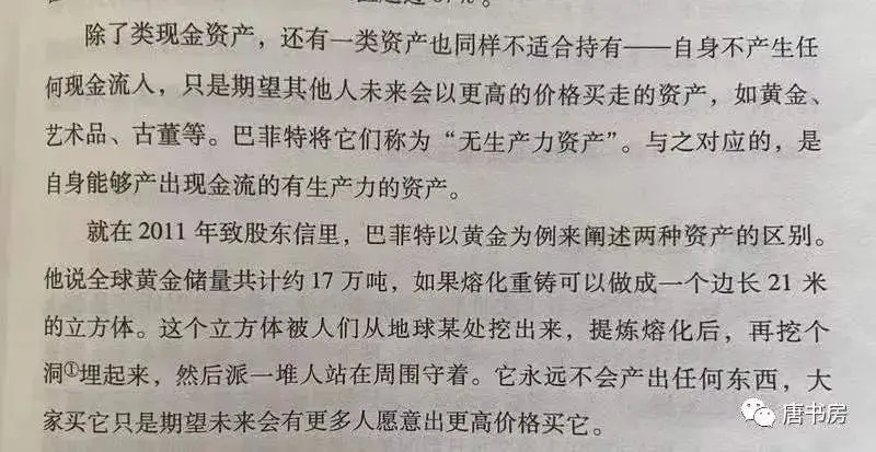 用“生产性”资产去交换“非生产性”资产的想法对我来说很陌生。