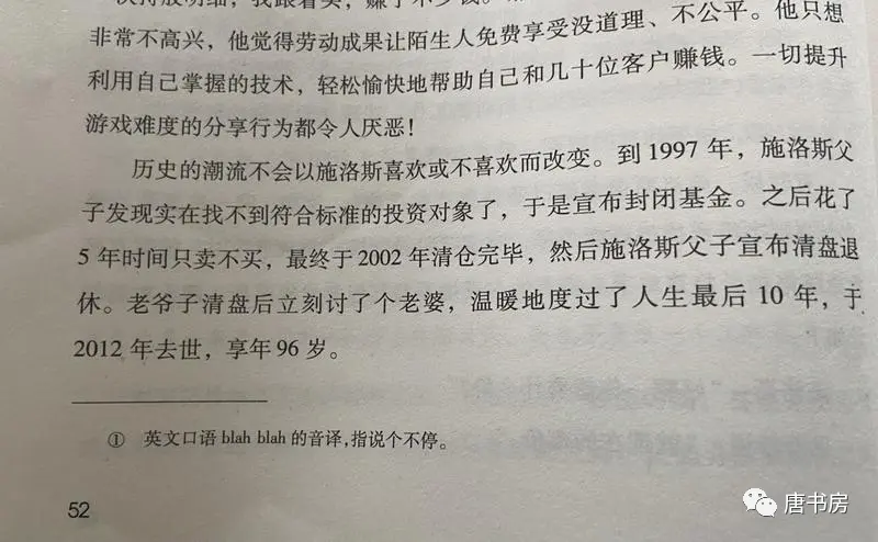 SK:请教老唐,后来施洛斯也曾随着环境的变化而更新他的方法:如0.5倍市净率找不到了之后就从0.8倍中找,0.8倍找不到了就从1倍中找,总之还是在最便宜一堆中寻找他的标的。