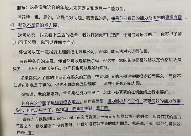 唐朝:二老论能力圈:有疑问,就不是。你会自动感知到能力圈的边缘在哪里。