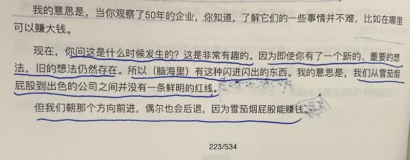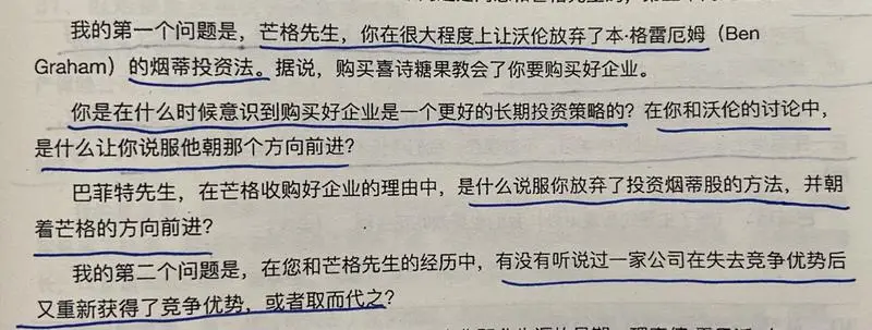 同时巴菲特也清晰的回答了,其实并没有一条鲜明的界限,以某时或某事件为界,划分出从烟屁股模式转变为购买优质企业的模式变化。