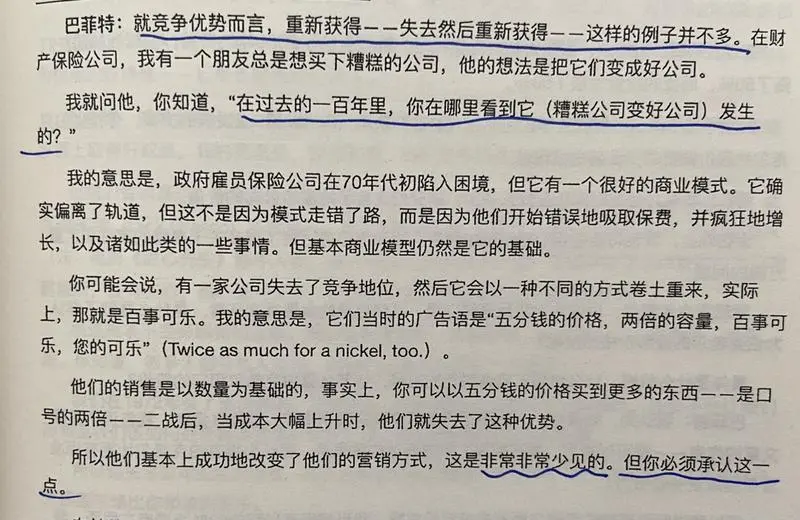 在不断的实践和思考中,慢慢地因为购买优质股的模式更赚钱,更有效,也就自然而然地占了更大的比例。对于竞争优势失而复得的案例,巴神的意思是,有但很少见。