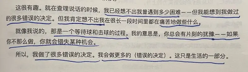 唐朝:问:你一生中最艰难/痛苦的决定是什么?巴神:我会犹豫,我会做错,过去和未来都是如此。但没什么艰难痛苦,它们不过就是等待和击球,是生活的一部分,无论对错都算不上艰难和痛苦。