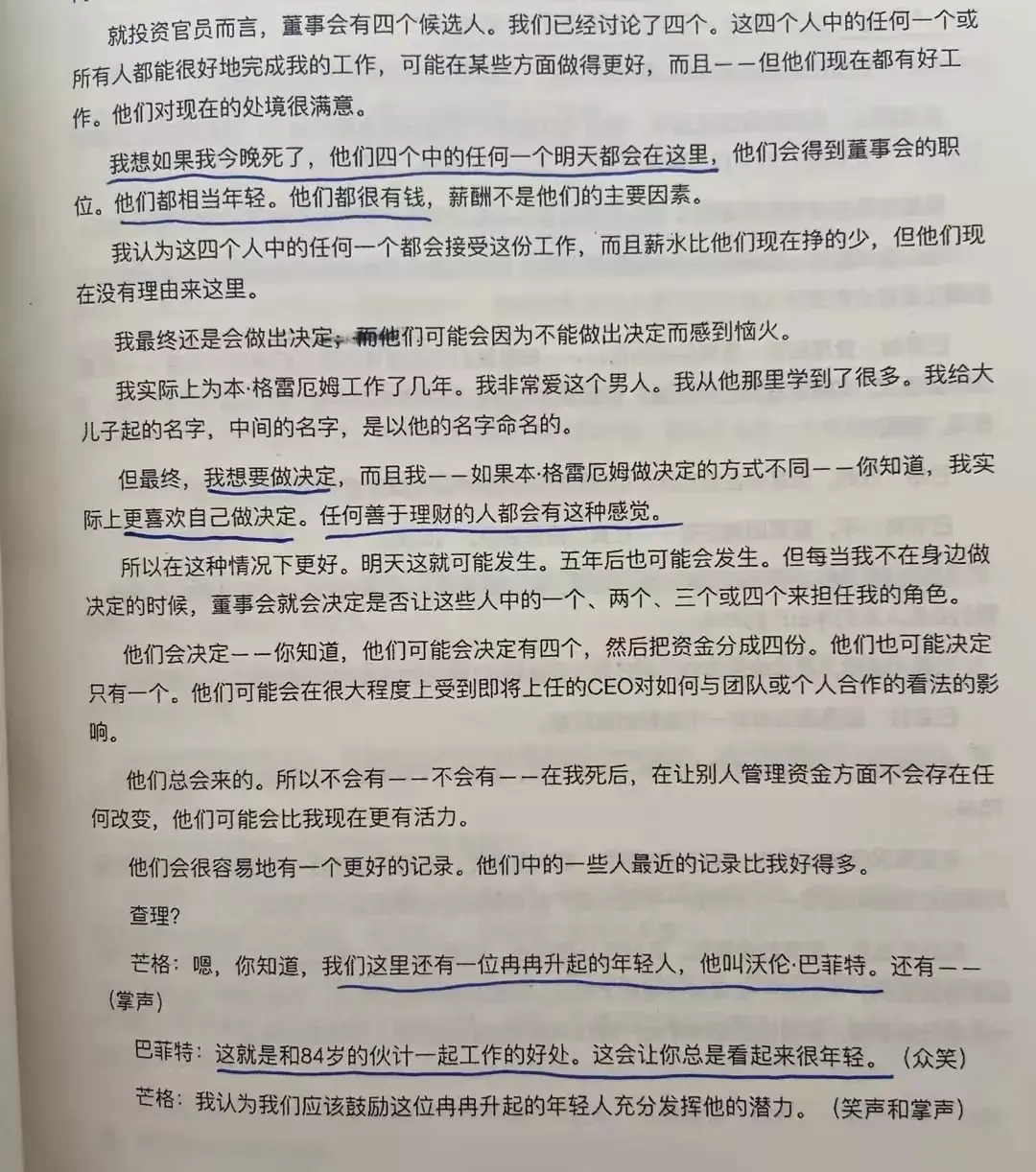 老张:还在合伙基金那阶段,才三十来岁,当时就有投资人问这问题了。巴神答了几十年了,所以答案也越来越完善了。