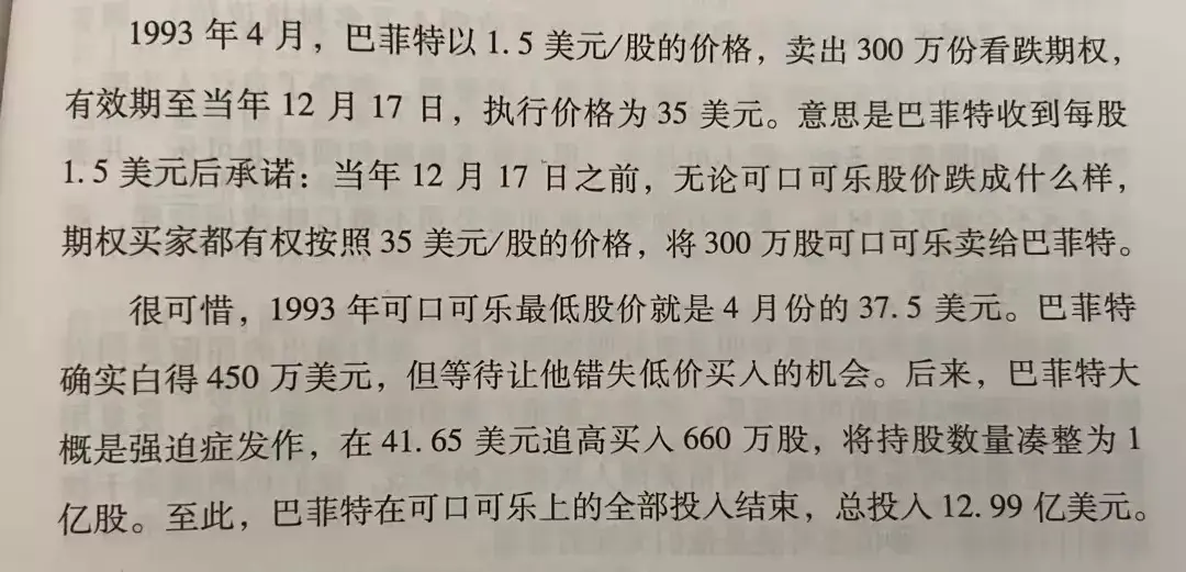 唐朝:巴神说的就是《巴芒演义》289页(图二)谈到的这次卖出可口可乐的看跌期权的故事。如果当时巴神不贪那个小便宜,直接买入,结果会更好。