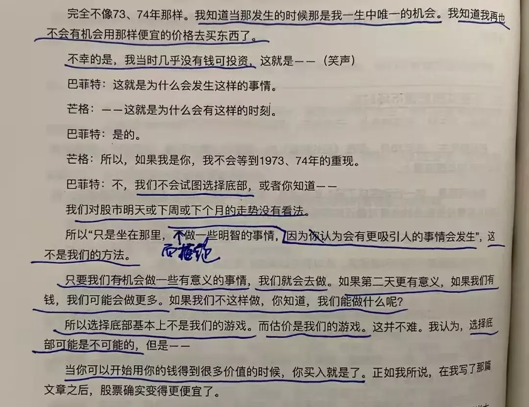 唐朝:有明显的便宜就下手。后面如果有更大的便宜出现,有钱就买,没钱就傻看着,绝不会去预测底部。Leon:没有老唐解读,这本书自己根本读不进去,每个字都认识,就是读不明白想说啥。Glenn:在明显低估时买入,从不预测底部。