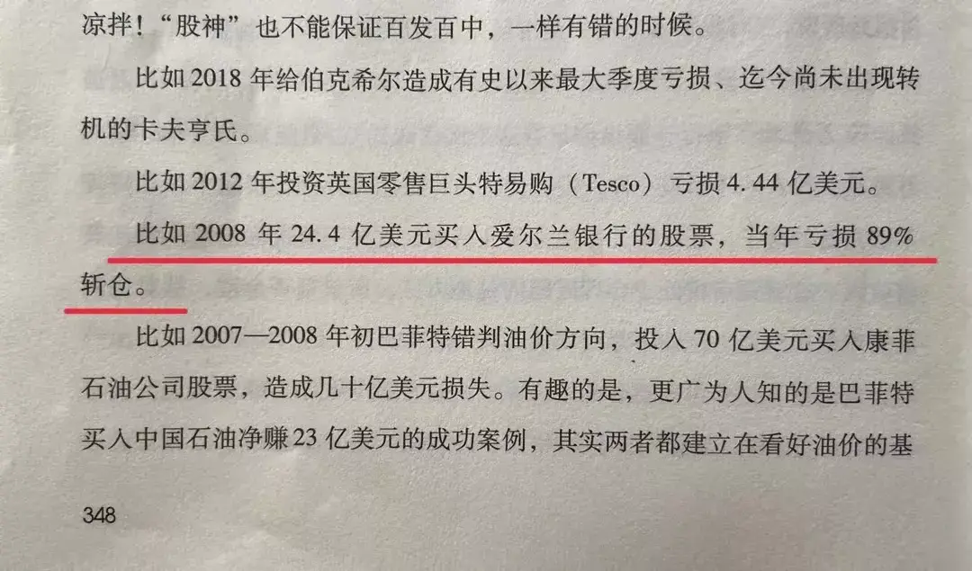 唐朝:汗,一直没人发现这个印刷错误。还是我刚刚引用的时候,自己发觉不对劲巴神2008年投资爱尔兰银行是2.44亿美元,亏了89%。《巴芒演义》这里印刷成24.4亿美元,错了一位小数点。不好意思,下次加印的时候修改。