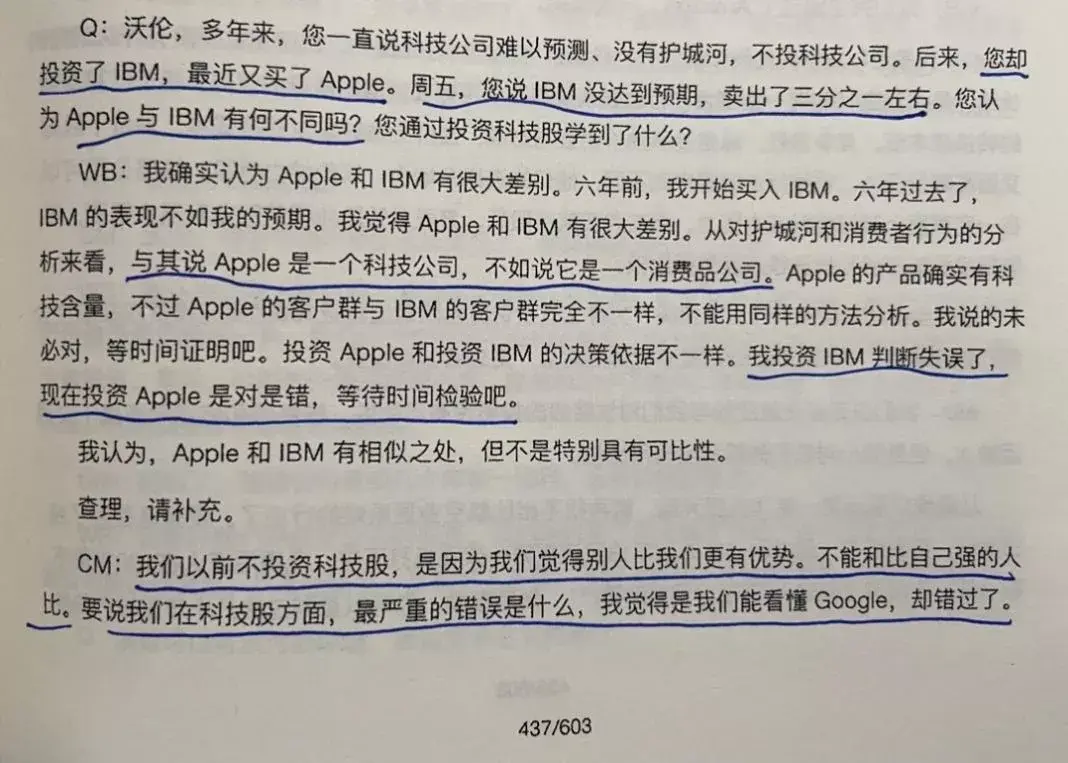 唐朝:二老在科技领域算得上成功的投资也就是苹果了,但核心原因其实是因为苹果更像是披着科技外衣的消费品公司(可口可乐,喜诗糖果同类)。