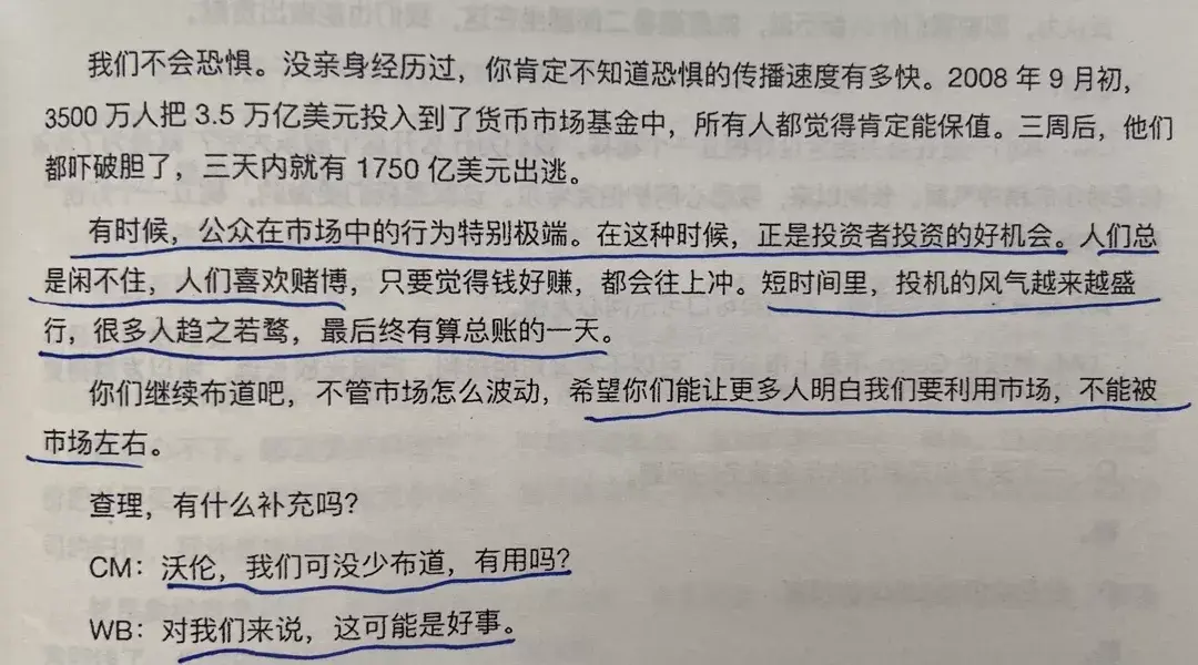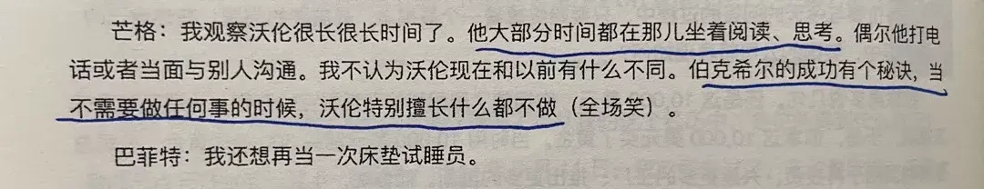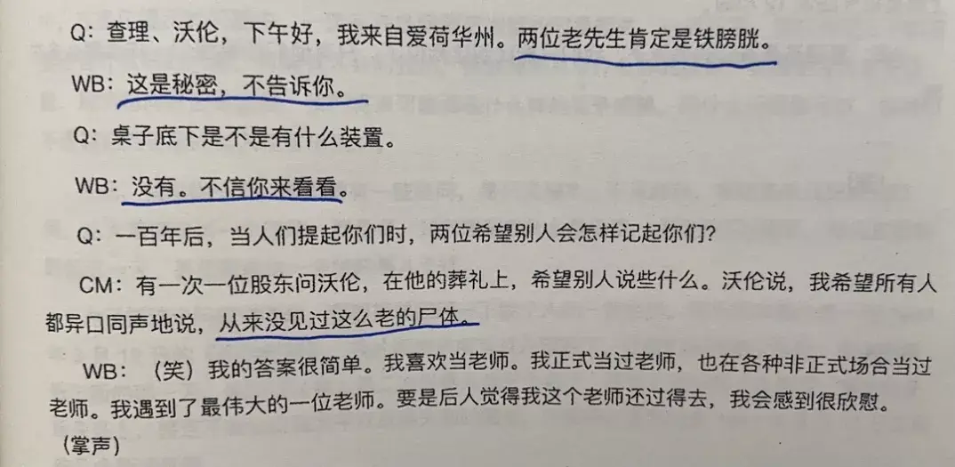 stby:我反而从老唐没有划线的最后一句,看到价值投资者大都喜欢做老师,无私分享。姚文学:笑得我眼泪花都出来了,这哪是8、90岁老头,纯粹幼儿园小朋友。