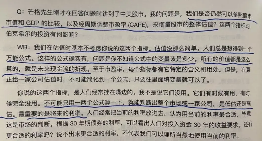 企业估值过程当中,最重要的东西是这家企业未来能够赚到多少自由现金,以及未来的利率。前者需要你理解企业,这需要大量的阅读和思考。后者无法预测,只能参照当下,且尽量不要采用极端数据(若当下数据是极端的),然后在估值结果中留下安全边际去应对。Glenn:估值过程,不仅需要知道未来的自由现金流,还需要知道未来利率。