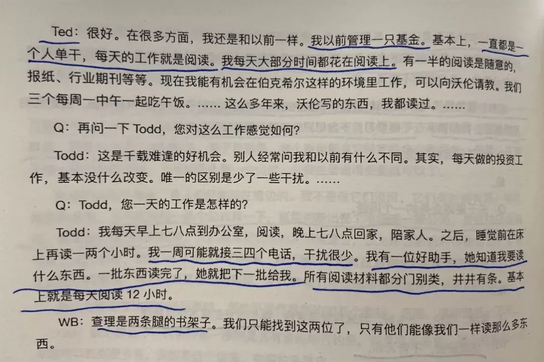 唐朝:这几位都这样,主业就是阅读。托德说他一天阅读12个小时。