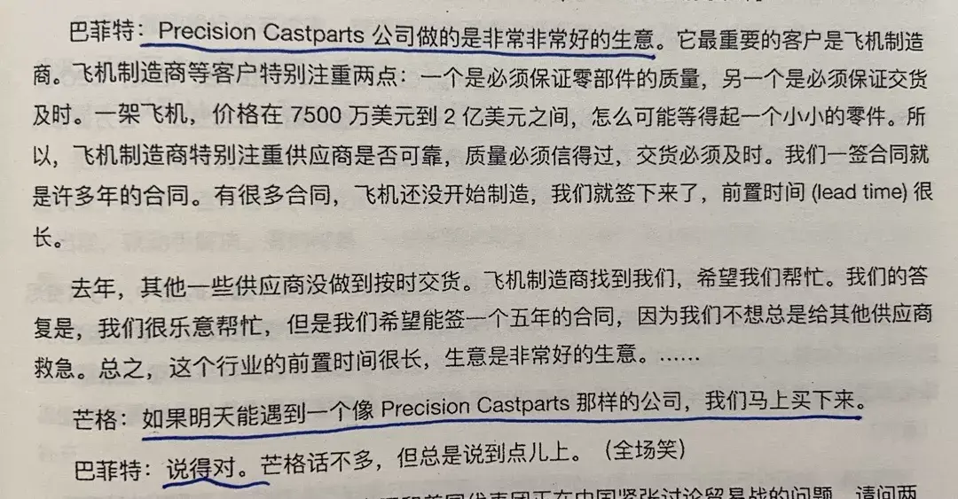 C q:好奇看了一下这家公司衰败的原因,主要是疫情对航空业的打击和油气行业的漫长熊途。请教唐师:这笔投资是巴神投资体系里必须要承受的错误成本,还是在投资之前可以避免的错误?谢匡:Lead time不是交货时间嘛?