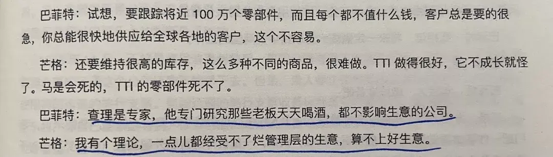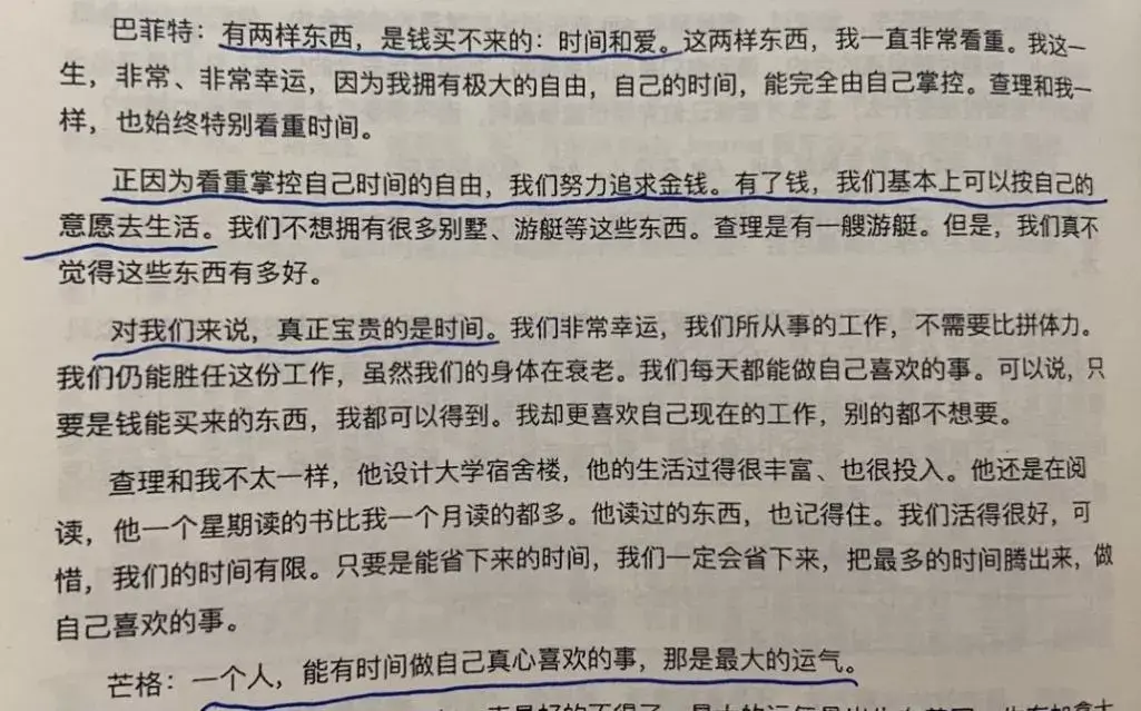 K.J:读巴芒的时候误以为巴神金钱观不够正,有些过头,有些”抠门”了,一套房,绉衣服,破车子,永远可乐牛排。不如芒格的金钱观正。这里看来巴神金钱观非常正啊,只是他太专注,对那些投资外的东西太无所谓,无感罢了。