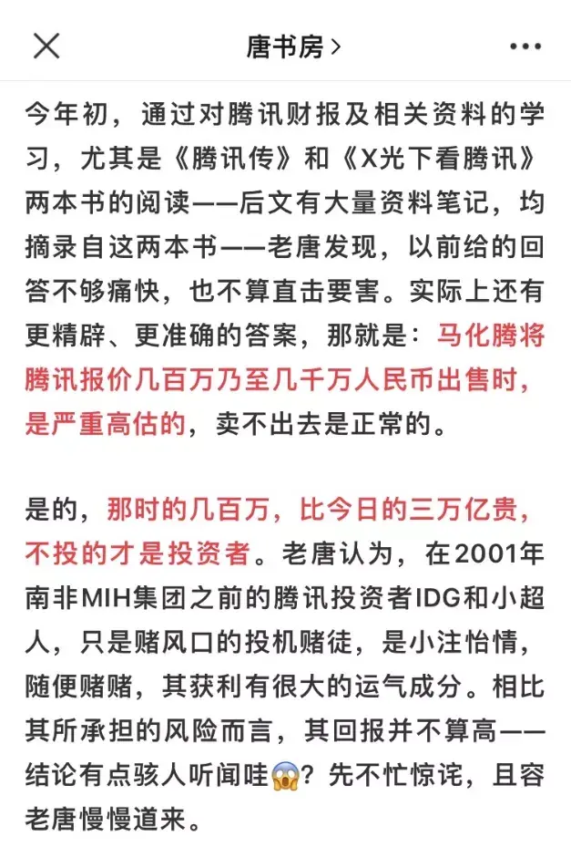 戳锅漏BearG:投资需要会计+通识,了解事物的客观规律,了解人,了解历史,了解为什么要谨慎乐观。兵仔:投资的真谛其实就是几句话就概括了,但延伸解释这几句话让大家明白唐兄用了数十万句,这些年感谢唐兄的无私奉献!