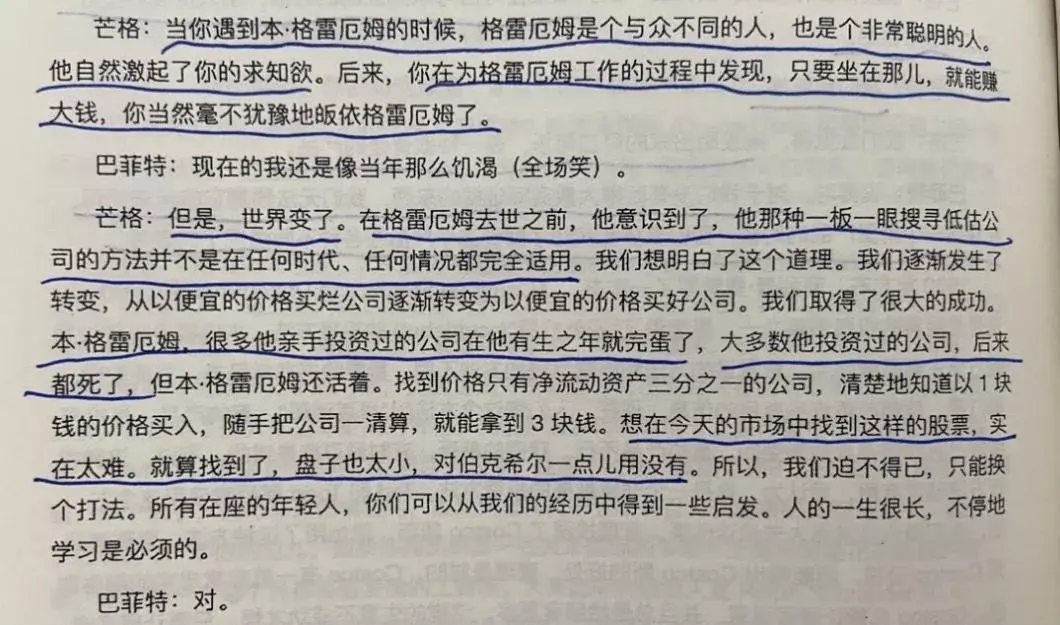 砺锋:便宜不代表是好东西。好东西不需要等到他很便宜,只需要有一定的安全边际。张宏波:前后连起来记忆,干万别忘了后半句。