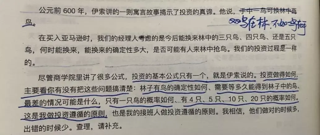 投资就是判断林中大概有多少只,抓住两只的概率有多大,抓住更多只的概率有多大,一只都抓不住的概率有多大,需要多久才能抓住(时间太久不如等手中鸟生蛋)