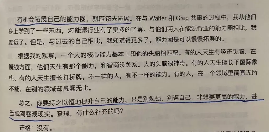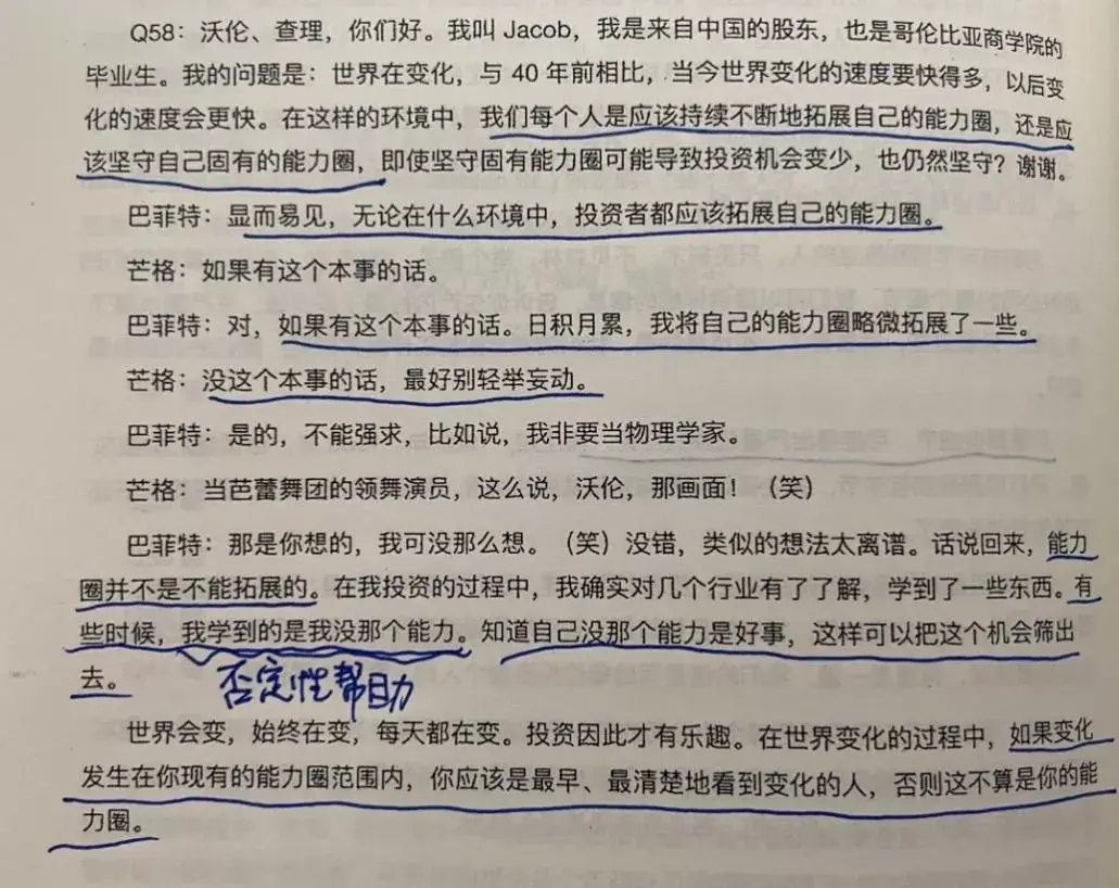 唐朝:在能力圈内行事,同时不断学习,尝试去扩大自己的能力圈。这是自然而然的事情,并存而不是矛盾。K.J:双环学习,不断巩固加强已知环,但不能固步自封,时刻准备学习拓展外环。