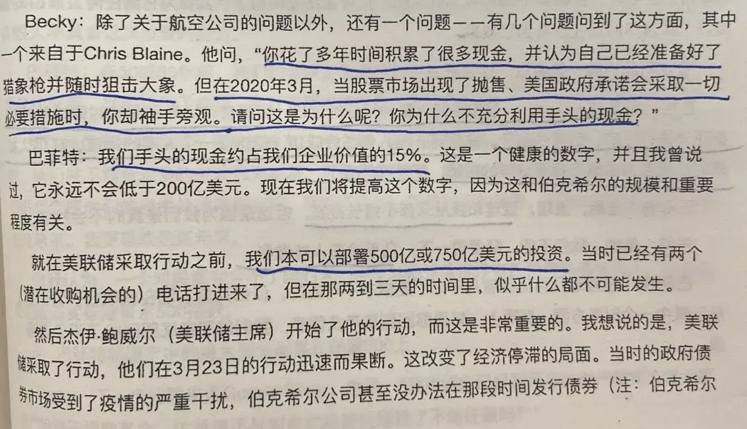 唐朝:有股东质问为什么2020年3月危机底部,伯克希尔没有把所有的现金全部花出去?巴神巴拉巴拉巴拉解释了半天。