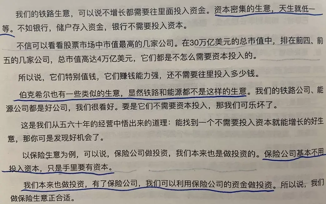 唐朝:巴神再次阐述自己为什么投资能源和铁路:他们天生就低人一等,赚不到什么大钱。但是能容纳大量资本,并带来合理回报。而恰巧伯克希尔有大量的低成本资本需要找出路。还有,图1里边巴神说银行是个好生意,这是针对美帝的银行说的,利润都是自己的,捅出大篓子来了,纳税人擦臀部。我们的银行不是这样子的。