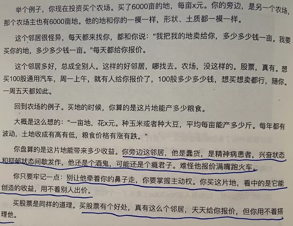 黑牛:格雷厄姆为了揭示股票市场非理性的行为,编了两个著名的寓言故事。一个就是“市场先生”一个就是“地狱里发现石油了”,故事说的是:有一个石油勘探者在上天堂的时候,圣彼得告诉他一个坏消息。圣彼得说:“你的确有资格进天堂,可是你也看到了,分配给石油勘探者居住的地方已经客满了,我实在没有办法把你安插进去。”那个石油勘探者想了一会之后问圣彼得说:“我可不可以跟那些住在那里的人讲一句话?”圣彼得同意了。那个石油勘探者于是合起他的双手成杯状,放在嘴边大喊:“地狱发现石油了!”忽然之间,大门开了,所有的人蜂拥而出向地狱冲去。