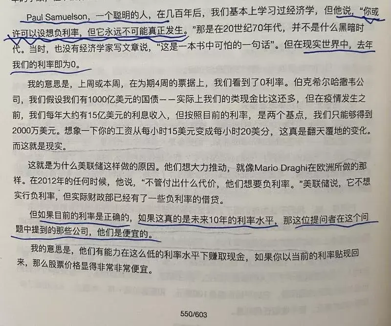 唐朝:不谈政治,但利率问题是躲不过的。无风险利率是估值的中枢。零利率甚至负利率的出现,没有人能想到,也没有人知道后边会发生什么,但逻辑上它不大可能持续存在。在零利率时期,过于乐观的人为乐观买单的概率很大。