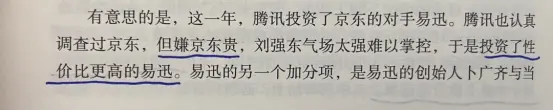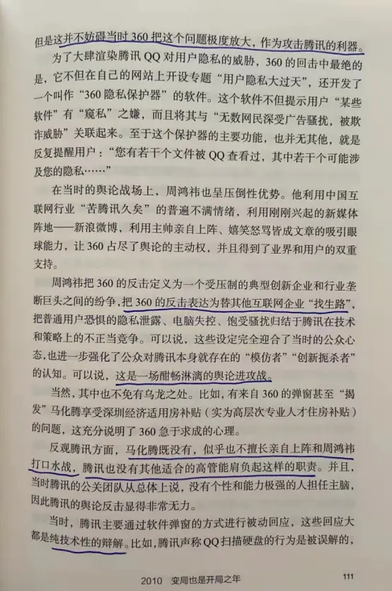 伯涵:当时有本书叫《X光下看腾讯》,小马哥请了各路专家学者来给企鹅把脉,反思为什么经常会成为众矢之的,后来通过入股的方式,既避免了被围攻,又节省了自己的精力,还成就了他人,思路一变道路宽,心态也越来越开放了,从此走向了美妙的良性循环。Fei:这也启迪我遇到环境变化要让自己从更大的格局上思考问题。