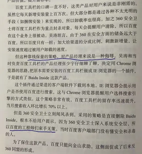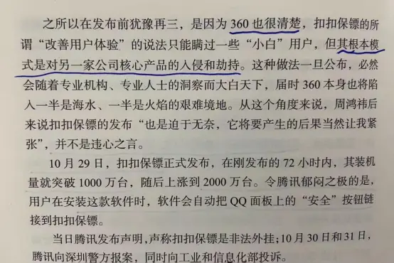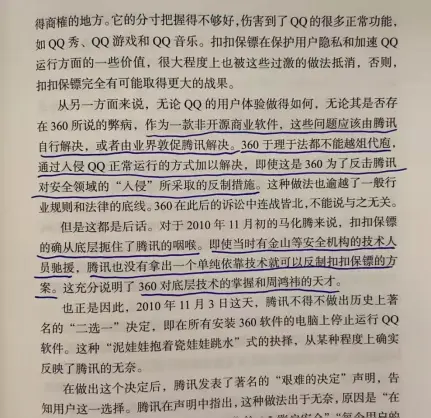 唐朝:这些细节反而令人为周鸿祎扼腕叹息。自己及团队拥有这么强大的技术能力,本应该更有成就,给这个世界做出更大贡献,留下更辉煌身影的,顺带同样也会赚到钱—或许比今天多,也或许比今天少,但肯定可以算富裕。天分“只是”被用来赚了点儿钱,可惜了。伯涵:这么说来,当时“艰难的决定”完全是被逼到墙角,生死关头,已经没有选择的余地。不然以小马哥的人品,断然不愿意“胁迫”用户。