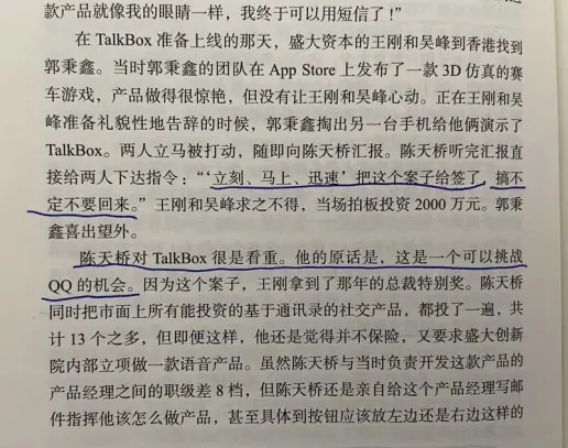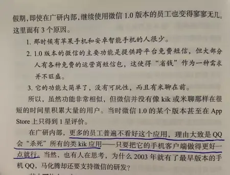 唐朝:事后都易,当下最难。有现成的手机QQ拥有大量用户,弃之不用,另起炉灶开发一款通讯APP,这还真需要一点魄力和洞察力的。