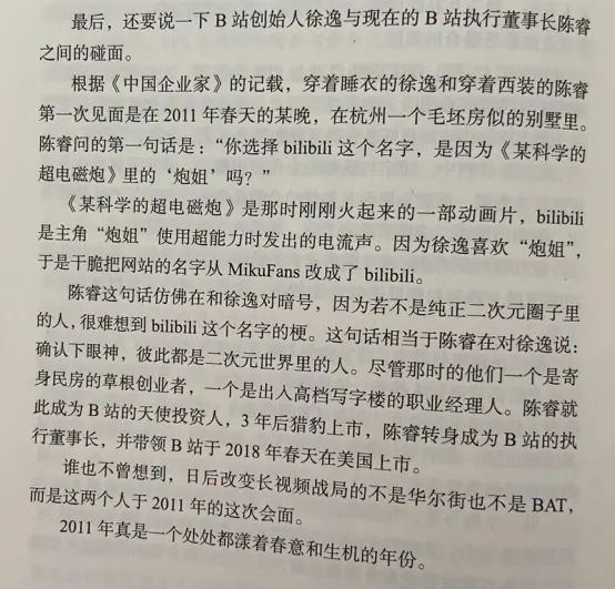 周明芃:00年开始的二次元生涯,居然不知道”bilibili“是御坂美琴的电磁炮声音。神经蛙:徐逸是80后的,怪不得你这00后不知道,这位总裁完全就是因为做自己喜爱的事而上了服不服排行榜。周明芃:侧面说明了人还是要做自己感兴趣的事情。