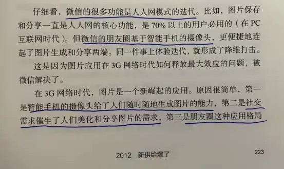 唐朝:新技术没有出现之前,大家觉得事情就是理所应当这么做的,比如把相机连上电脑然后上传照片。但一旦更便利的新技术出来以后,老作法就变得荒诞到不可思议了,用户一秒叛变。今天若让你我把手机连线电脑,传了照片到电脑后再发这条读书帖,那真是想死的心都有了,完全无法接受。民为先:技术变化太快了,被超越了想再反超几乎是不可能。
