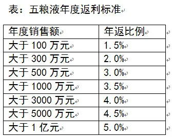 2013年3月24日之前,五粮液的 出厂价为659元/瓶。按照此出厂价进货的经销商,另外享受季度返利和年度返利。季返按照10%执行,年返为1.5%-5%之间(见下表)。
