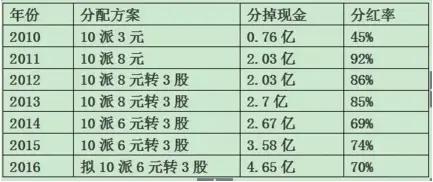 更为难得的是,伟星自上市以来保持的高额分红良好记录。如下表: