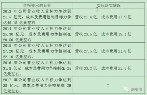 看人靠不靠谱,不是看他/她今日牛吹的多大,要看他/她过去许诺的东西有没有落实,企业也是一样。这个38亿营收,29亿成本费用,可信吗?看它的历史目标达成情况: