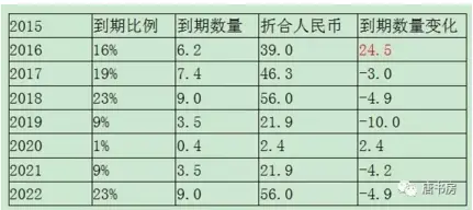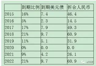 2015年归还了46亿多债务后(约7.4亿美元),年底尚欠本金38.96亿,并通过债务重组或置换(借低息新债还高息旧债),到期情况变成下表: