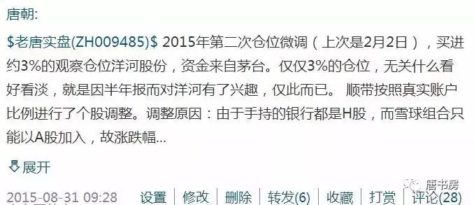 老唐首次介入洋河,是2015年8月31日,介入原因是因为读了洋河的2015年度半年报,对这家企业产生了兴趣,介入的价格是53.5元(说起来都是泪,老唐其实35左右已经注意到洋河了,然而由于一点理解上的不到位,一直到53才进去。伤心的往事,不提也罢)。