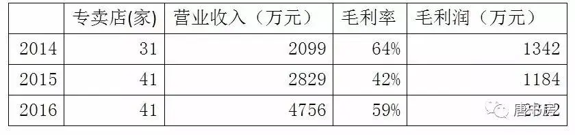 这个不知道该翻译成市长还是镇长的Mayor品牌,过去三年的专卖店数量、营业收入和毛利如下表: