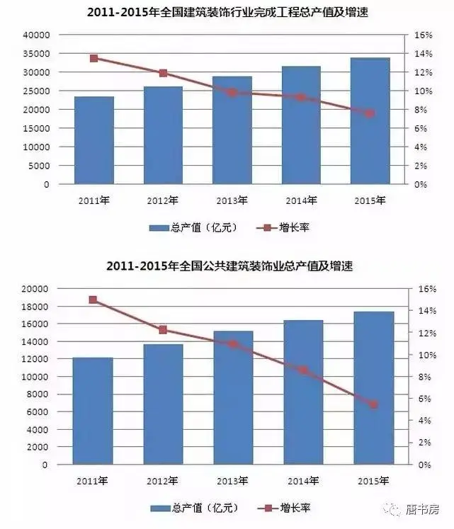 除此之外,本届政府强调廉政节约且执行力度较大,2013年就发文要求五年内全面停止新建党政机关楼堂馆所,严格控制办公用房维修改造项目,这意味着近两三年来自政府建筑的装饰工程也增长乏力。