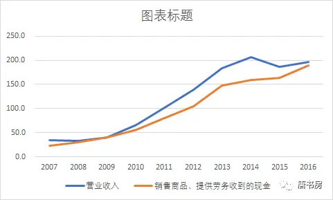 (30)请制作历年利润表“主营业务收入”与现金流量表“销售商品、提供劳务收到的现金”数据曲线对比图。并就两条线的走势差异发表你的看法。