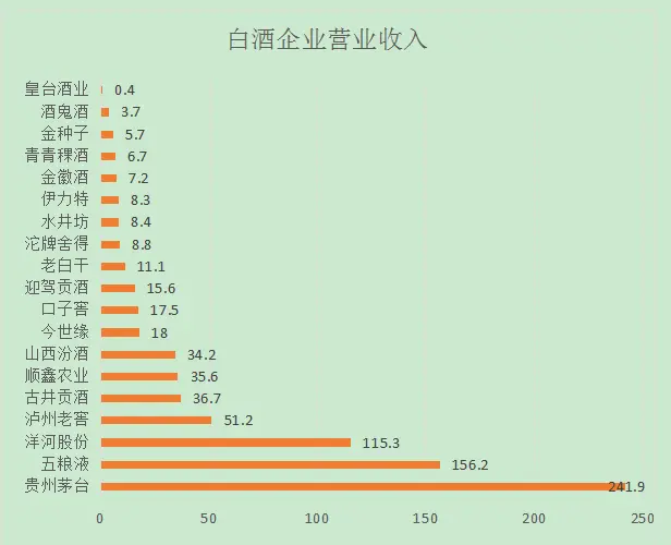 看营业收入,19家白酒企业,座次排名和往年没有什么变化,茅台、五粮液、洋河作为第一集团军,与跟随者的差距进一步拉大,行业呈现强者恒强态势。