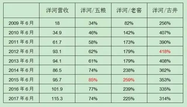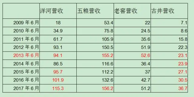 然后,洋河在2015年6月超越了前期高点并持续创出新高;五粮液在今年中报刚刚突破2013年中报高点;至于老窖,至今还没有出坑;倒是古井贡数据,完全没有过冬的感觉,保持逆风飞扬。