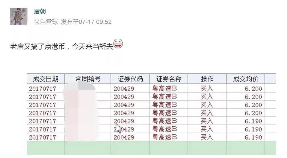 粤高速B粤高速覆盖的很偶然。今年7月16日,偶见有人转发粤高速中报,随手翻看一下,发现有肉。于是7月17日早上就6.2港币追进去(在唐书房和雪球均有实时分享)。当时有位朋友说我是追高(确实是历史新高位置),老唐还回答他:“是追高还是抄低,要取决于你比较的对象是企业价值还是历史股价”