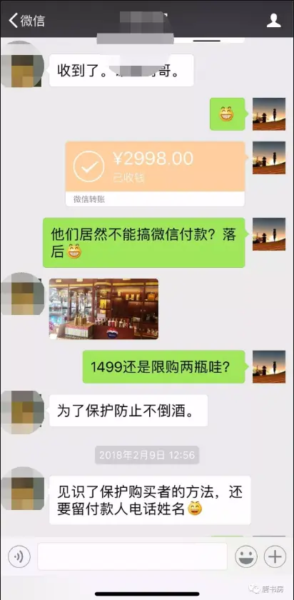 因为专卖店不收现金,不刷卡,不接受微信付款,只接受银行转账。不仅要登记购酒人姓名电话,还要留下转账人的姓名和电话,说是为了防止倒酒,茅台公司要抽查。没网银的朋友被搞到没办法,让我帮着转账,然后微信还我。