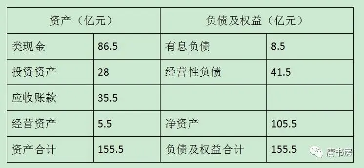 注:此处老唐将货币资金、应收票据、预付款项、应收股利、其他流动资产、递延所得税资产归为类现金;将可供出售金融资产和长期股权投资归为投资资产;应收账款、其他应收款和其他非流动资产归为应收账款;存货、固定资产、工程物资、商誉和长期待摊费用为经营资产——注意,虽然大同小异,但并不是所有公司都照着这个标准分,其中的其他流动资产,可供出售,长期股权,其他应收和其他非流动资产要看具体资产后决定归属。