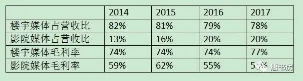 分众的核心业务就两大块:楼宇媒体和影院媒体。公司回A股后披露的过去四年楼宇媒体和影院媒体在营收中的占比和毛利率数据如下表: