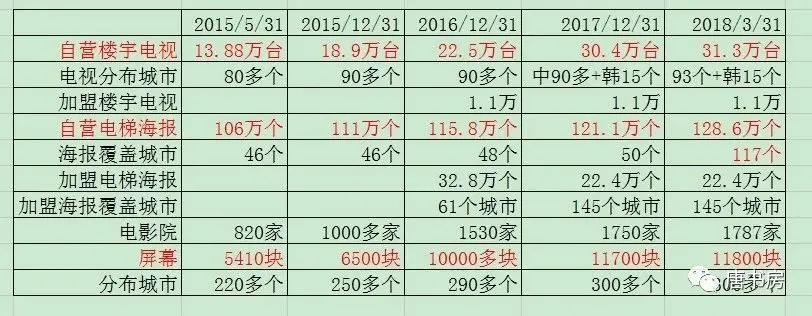 2017 年,公司在一线城市已基本完成更换。 2018 年,公司正陆续在二三线城市更新换代,顺带将以前 40×50cm的电梯海报也更新为 60×80cm的大版。