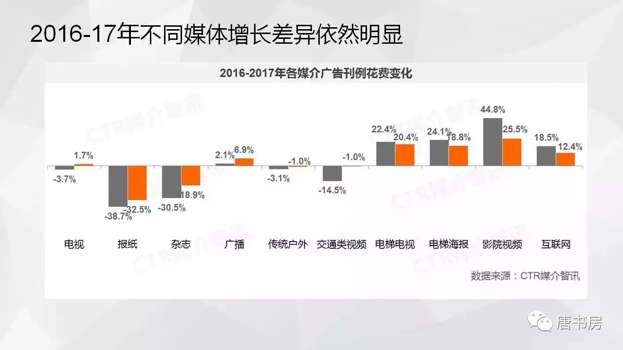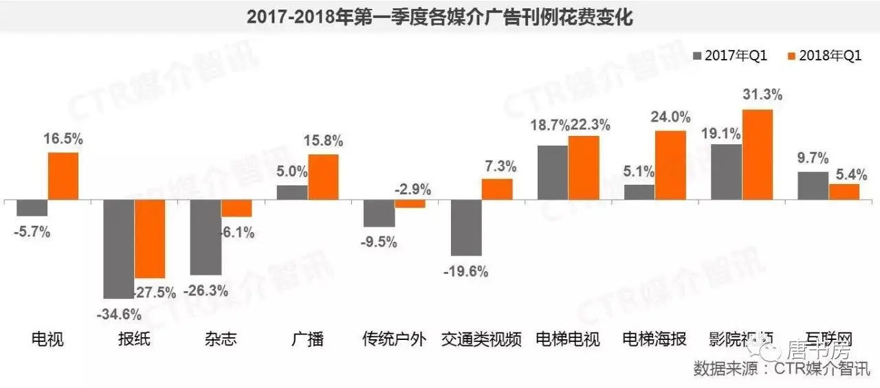 因为空间场景狭小和封闭,使得消费者在被动的信息接收过程中,更加专注和集中,广告效果得到了普遍的提高。正因为这个因素,过去几年里,在移动互联网高速增长过程中,电梯媒体不但没有受到冲击,反而呈现增长态势。数据为证,数据来自央视市场研究(CTR)