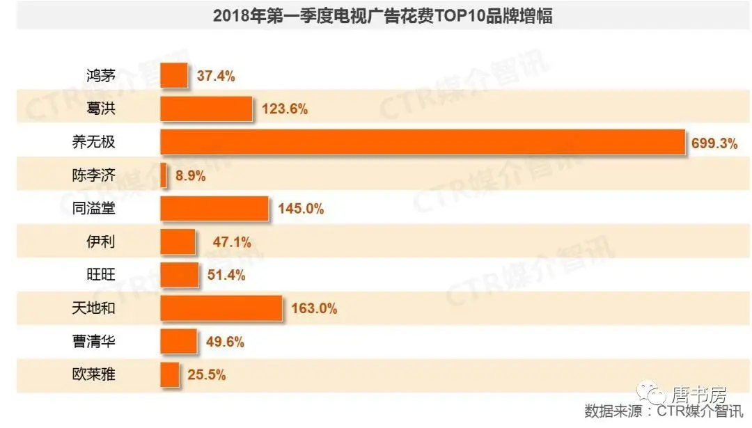 三是走出去。走出去,是从现有客户群体走出去,继续深化现有互联网、日用消费品、汽车和通讯客户群体的同时,拓展酒类、药类、建材家具家电类、食品饮料类等行业客户(财报披露的公司规划)。这个简单,没啥要解释的。报纸杂志电视上还有很多很多品牌,还没有在电梯媒体上露过面,限于篇幅,此处就随便举一个电视投放top10示意了。