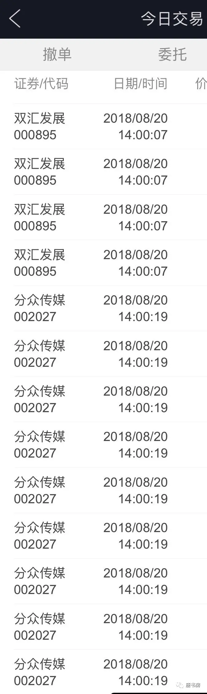 刚游完泳遇到心理价,在更衣室调仓,哈哈哈😂😂!均价21.98清仓双汇,均价8.68买入分众。从成交记录看,不多的买入(约2%仓位),一屏都没显示完,全是碎单卖出。当前持仓%:茅台37-,腾讯31-,分众8-,洋河6+,古B6-,海康6-,民生H4+,招行H3+,年内收益-6%✌️